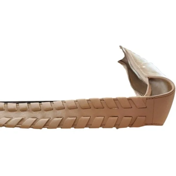 This beautiful Vince Camuto hobo shoulder bag is made of genuine leather and comes in a warm vanilla color. The crescent shape measures approximately 41.5 inches around from left to right, and the medium size is perfect for everyday use. The bag features a zip closure and has silver hardware accents, including buckle, braided/trim, tassel, strap accent, and zipper. The interior of the bag has inner pockets and an adjustable shoulder strap with a drop of 18 inches. The bag is customized with a solid pattern, crescent shape, and applique. It is a designer piece that is perfect for women who want style and function. Made in India, this Vince Camuto purse is brand new with tags and is an excellent addition to any collection.