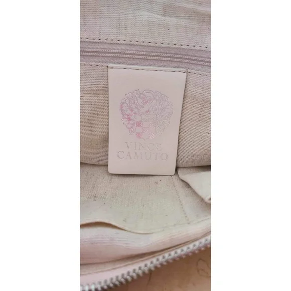 This beautiful Vince Camuto hobo shoulder bag is made of genuine leather and comes in a warm vanilla color. The crescent shape measures approximately 41.5 inches around from left...