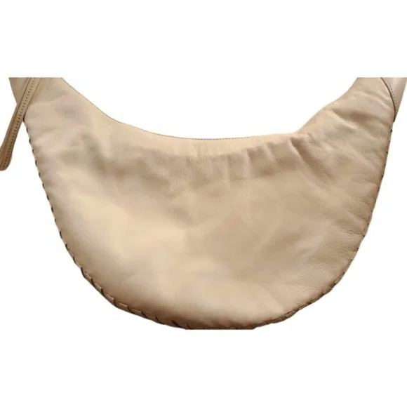 Vince Camuto clarq genuine leather warm vanilla crescent shaped hobo handbag NWT