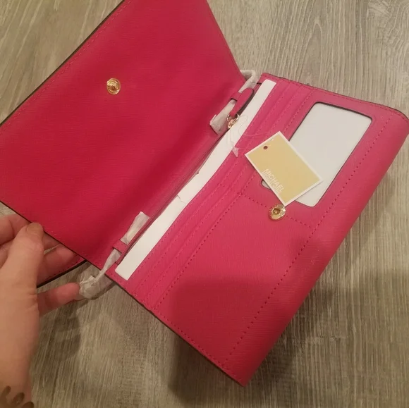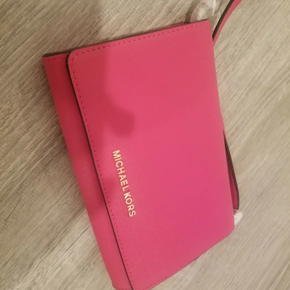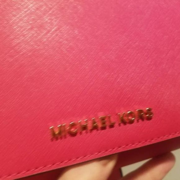 Michael Kors Crossbody Clutch. Color - electric pink. Available in 5 colors.Crossbody bag.Features & detailsLeather with gold tone hardware. Shoulder strap. Interior features: 6 credit card slots, one zip and 2 slip pockets. Approximate measurement: 8.5´´ W x 6´´ H x 1.5´´ D.PRICE IS FIRM