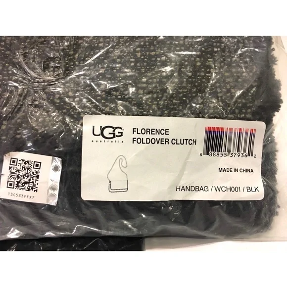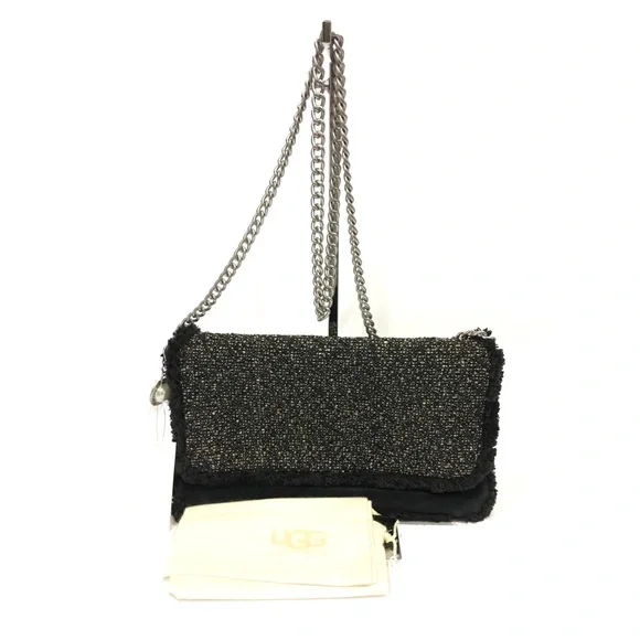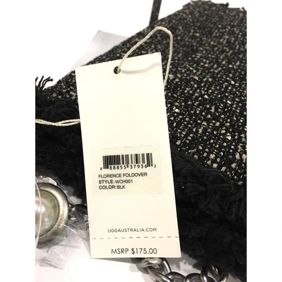Authentic UGG “Florence Foldover” women’s clutch-Model: WCH001-Color: Black-Size:-NEW WITH TAGSDETAILS:-Magnetic closure-Silver metal chain crossbody strap-Black and White Tweed-Faux Pearl and rhinestone charm-Hologram of authenticity === Pictures in this listing are from the actual item being sold. Please refer to them for details======100% AUTHENTIC! Buy with confidence… Inside tag and box label had been marked red by the dealer to prevent in-store returns===