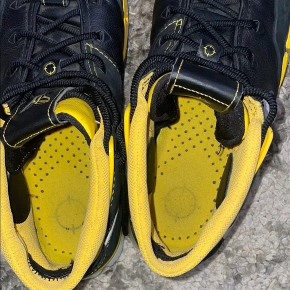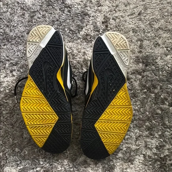 Stylish Nike athletic shoes. Black with yellow accents. Comfortable and durable design.•pet/smoke free home •fairly worn - good condition • Authentic • Limited...
