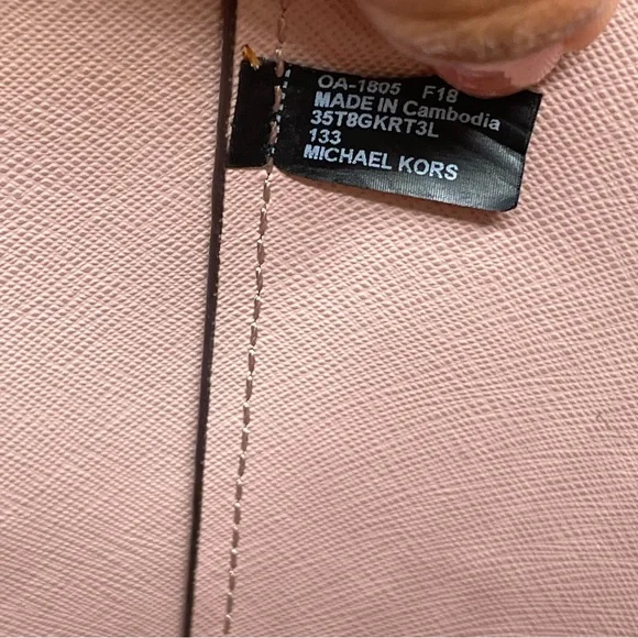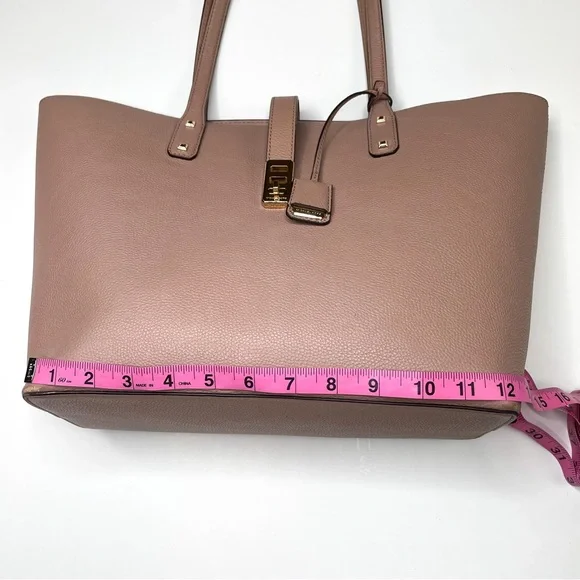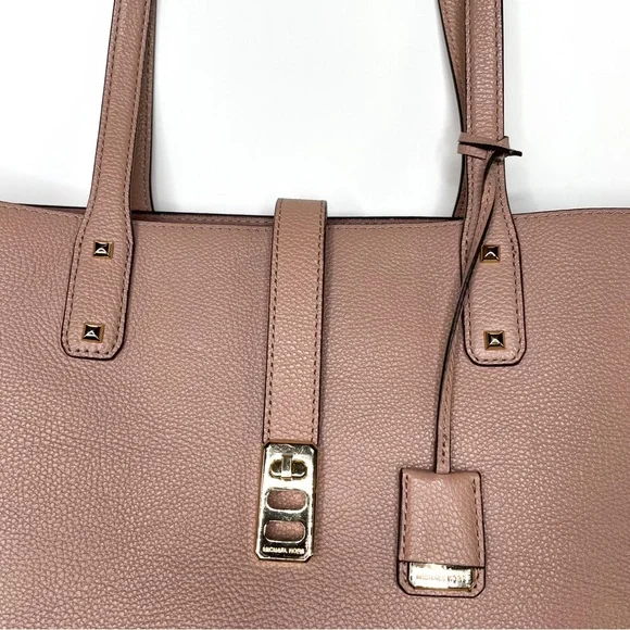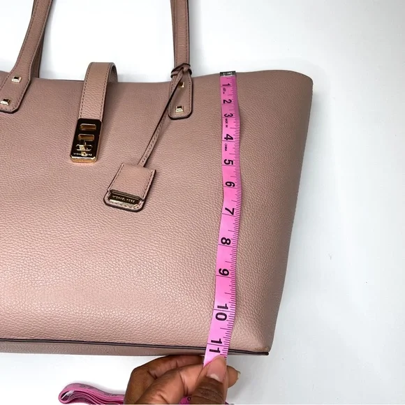 Michael Kors Karson Carryall ToteExcellent Condition (light signs of wear on the corners, see photos)Color: FawnPebble Leather Gold hardwareTurn lock closuresLaptop compatible10”L Top HandlesSee photos for other measurements TAGS: neverfull, tote, large, pink, blush, barbiecore,