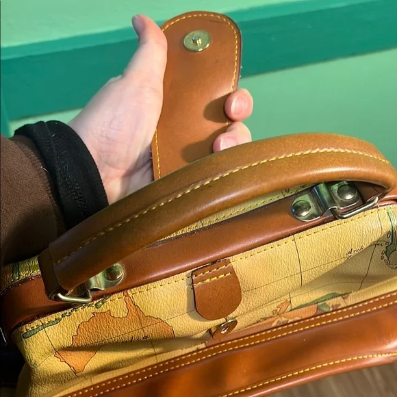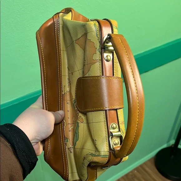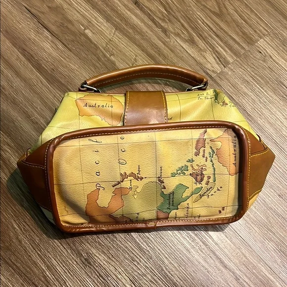 Alviero Martini Yellow and Brown Travel Bag with Map Design