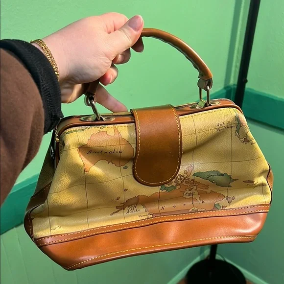 Embark on your journeys with the Alviero Martini travel bag, featuring a vibrant yellow and brown map print that exudes a vintage charm. Crafted for durability, this bag combines style and functionality, making it an ideal companion for your adventures.