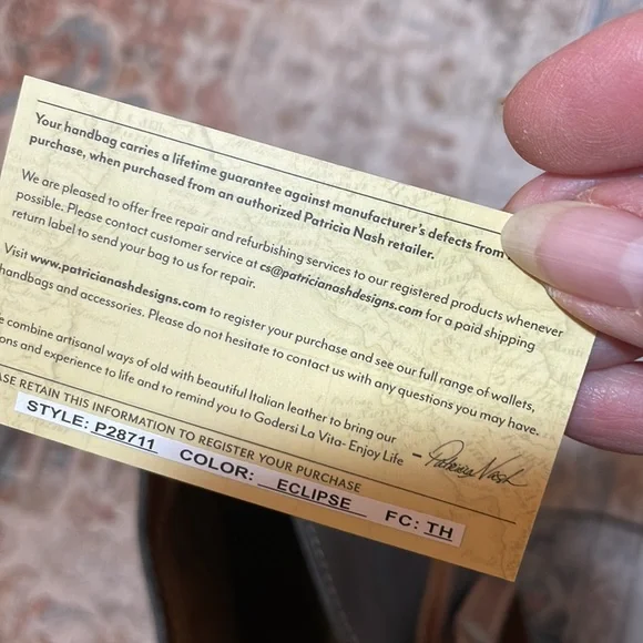 Dark blue/black, color called Eclipse, large tote bag by Patricia Nash. Measures approximately 13“ x 19“ wide at widest point. This is a dark blue. Last picture shows a black...