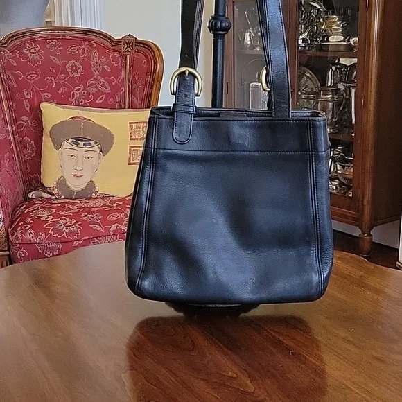 Vintage black Coach Solo handle bag.Magnetic snap closure,inside zipper pocket,adjustable straps.In very good condition.