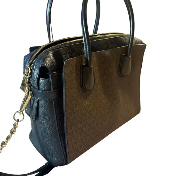 Michael Kors Black and Brown Satchel with Gold Accents