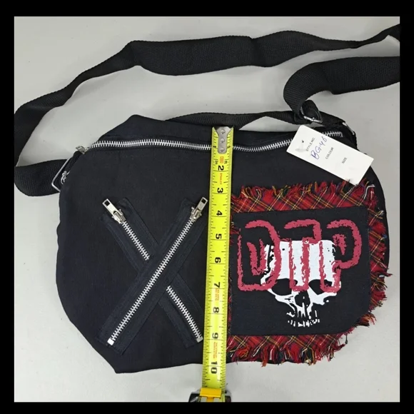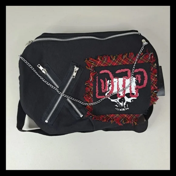 brand is DEAD THREADSdef Tripp NYC look!.Anarchy, baby!DTP; Disturbing The Peace? Defund The ? Desensitized, Terrorized, and Processing!.A totally punky cool black shoulder bag...