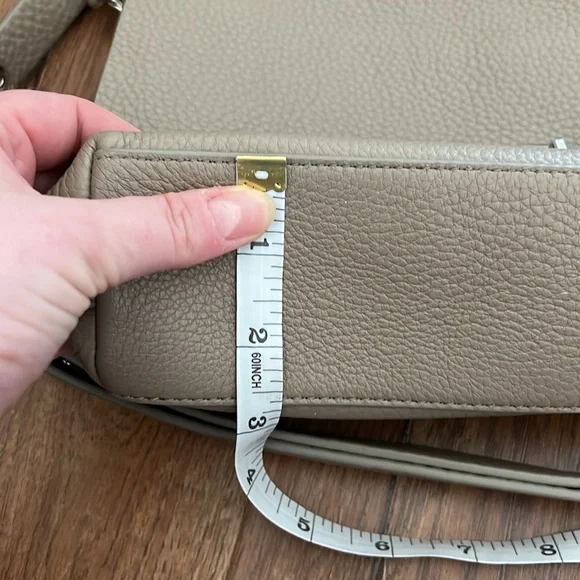 Strap is adjustable to two lengths: 27” or 44”Like new no flaws, see imagesColor is a sandy gray