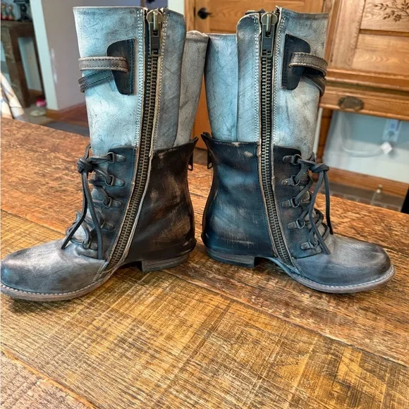 Freebird Ravi Ice Stylish two-tone lace-up boots with buckle detail. Perfect for a chic look.