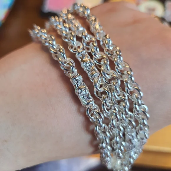 *This chain necklace is stamped with "足銀999" which means *sterling silver 999" (Solid 99.9% Sterling Silver)*The length of the necklace is around 22.5 inches. *The weight of the necklace is around 41 gram.