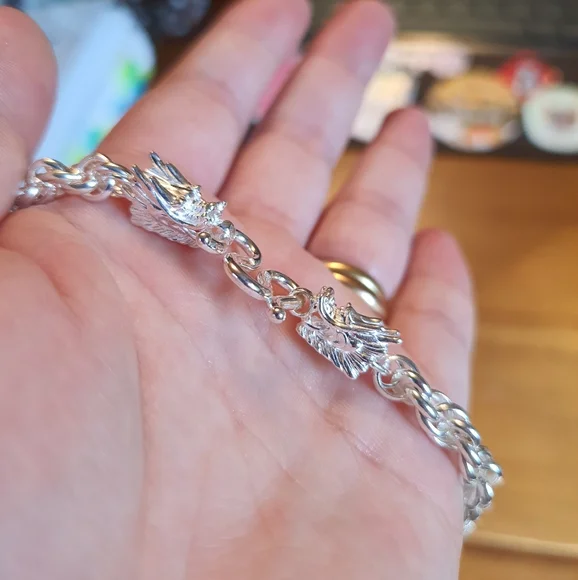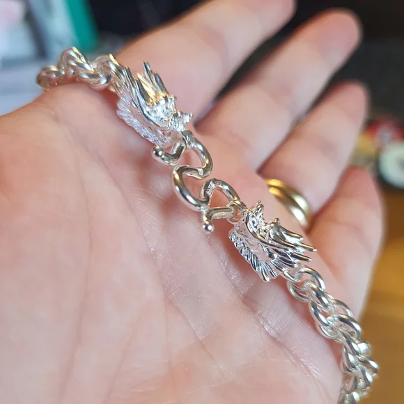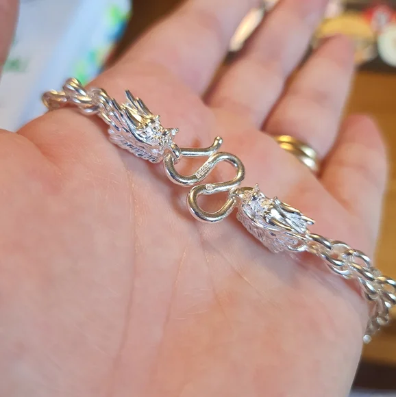 Chunky Solid Sterling Silver Dragon Chain Necklace-Style 2