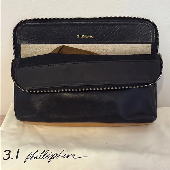 Elegant 3.1 Phillip Lim clutch bag in classic black and white. Perfect for any occasion.