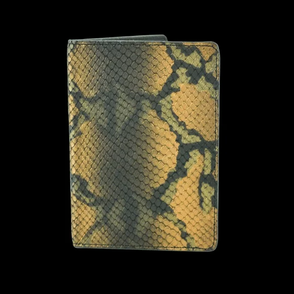 Stylish reptile print passport holder. Features a unique design with a blend of colors.