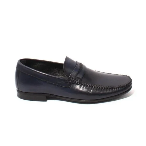 ROBERTO SERPENTINI 43206b Navy Leather Loafers Shoes