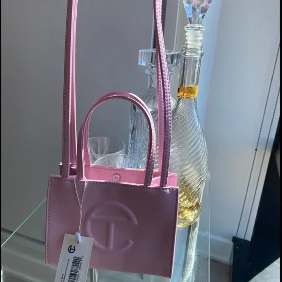 This Cherry Blossom Pink Bag is a statement piece that is perfect for any occasion. This bag has NEVER been worn and is in GREAT condition. This is an OG Bag and must have!Height 4 3/4", Width 6 5/8", Depth 3", Strap Drop 21", Handle Drop 4 3/4"50% Polyurethane, 50% Polyester
