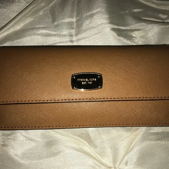 Elevate your style with this Michael Kors tan leather tote bag and wallet set. Perfect for any occasion, this elegant set combines functionality with luxury. The rich tan color adds a sophisticated touch to your ensemble.