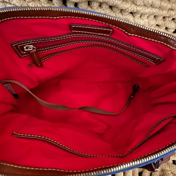 Flaunt your Indianapolis Colts devotion with this chic Signature Domed Zip Satchel purse from Dooney & Bourke. It features Indianapolis Colts graphics printed all over and the sophisticated touch of leather trim. You also have the option of carrying around this fashionable purse by the double handles or adjustable shoulder strap that is detachable.Product FeaturesAdjustable, detachable shoulder strap with lobster claw claspsFour metal feetHandles drop length measures approx. 5´´Interior key hookInterior phone pocketLinedMain zippered compartment with dual entryMeasures approx. 11.5´´ x 5.25´´ x 9.25´´Officially licensedOne exterior zippered pocketOne interior zippered pocketPrinted graphicsStrap drop length measures approx. 21´´Two carry handlesShell- 100% Polyvinyl-Coated Leather, Lining- 100% Cotton Canvas, Trim- 100% LeatherSurface WashableImported