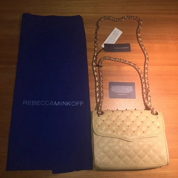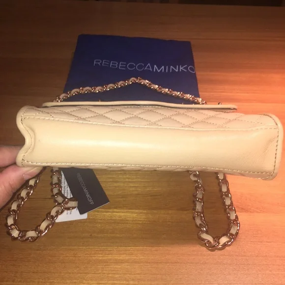 Rebecca Minkoff Quilted Mini Affair Shoulder Bag in Biscuit color. New With Tags NWT.Please look at all the photos. Although this is a brand new bag with tags and duster it does have a couple of small imperfections which can be seen on the photos. 1. Slight marks as seen on the last photos next to the back of the logo. Look at the bottom and 2 sides of the bag. The inside of the bag is in excellent condition and has an authenticity card in the inside pocket. Measurements:7”H x 8.25” W x 2” DStrap length single 23”Strap length double 13.25”Questions? Leave a comment below!