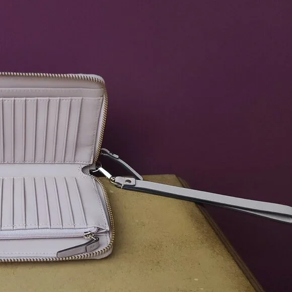 You will love this Wristlet!Beautiful Refined Leather in two tone cream and white.Two zippers one to hold your phone the other to place all your cards and ideas.Perfect to...