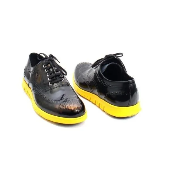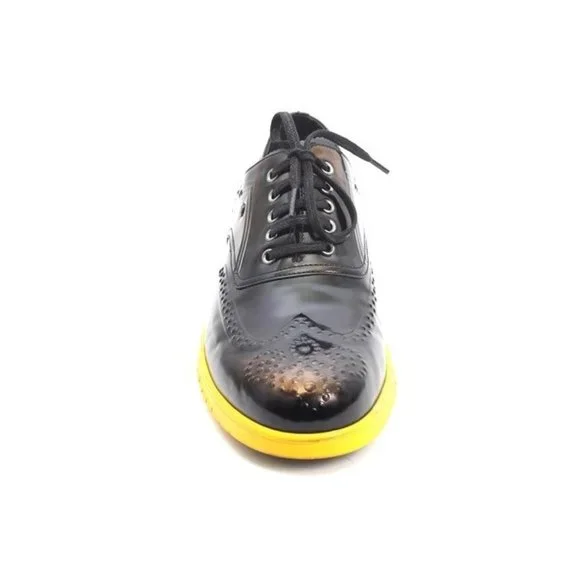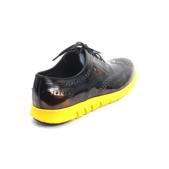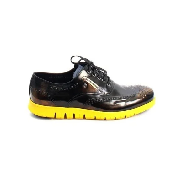 ROBERTO SERPENTINI 23909 Black / Navy / Yellow Leather Lace-Up Shoes