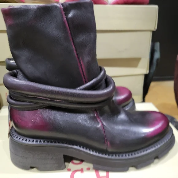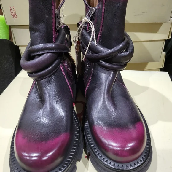 NIB A.S.98 Linder Fushia Black Ankle Boots 37