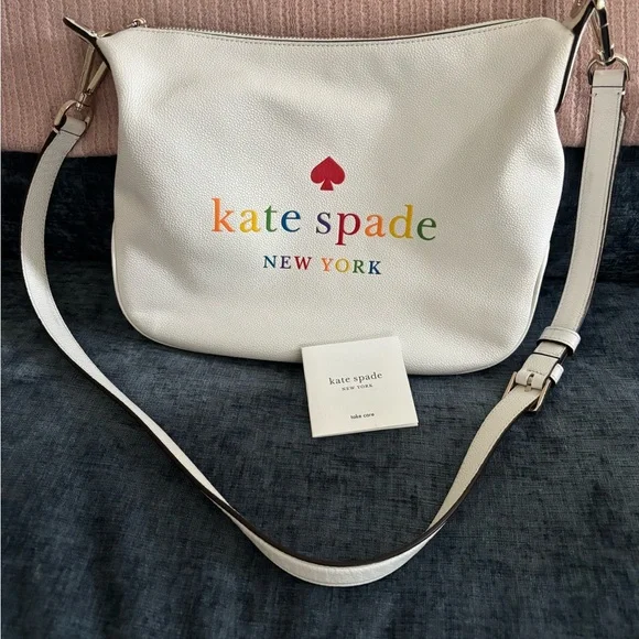 Chic and versatile, this Kate Spade white crossbody bag is perfect for any occasion. Featuring a sleek design with the iconic Kate Spade logo, it adds a touch of elegance to your outfit. This purse is a used nearly perfect purse. The inside is perfect. It looks like one little spot on the back, could be the lighting but I wanted to show it.