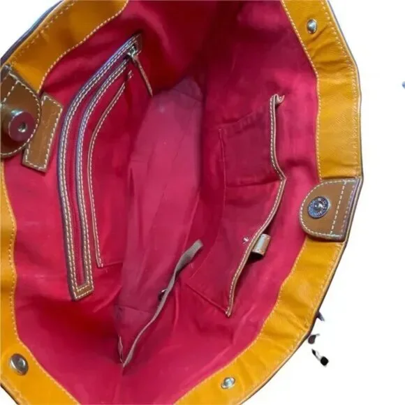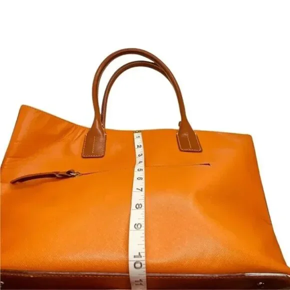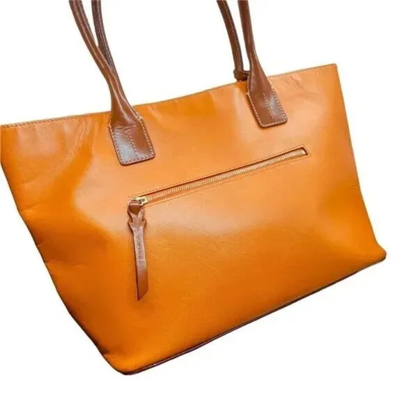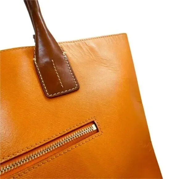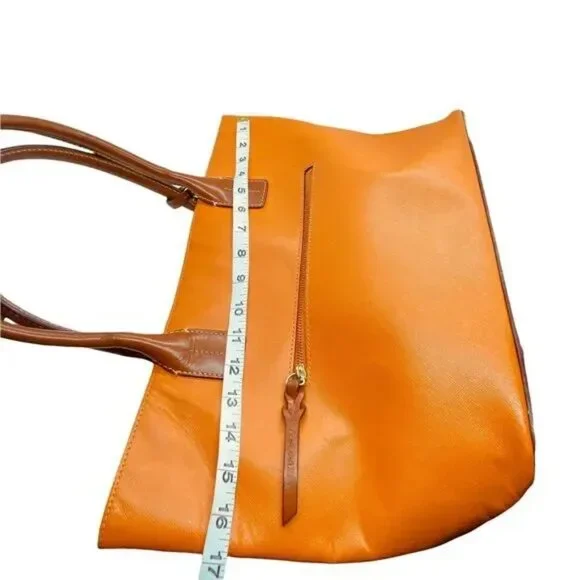 Dooney & Bourke Tote Bag Womens Orange Leather Double Handles Inner Pockets