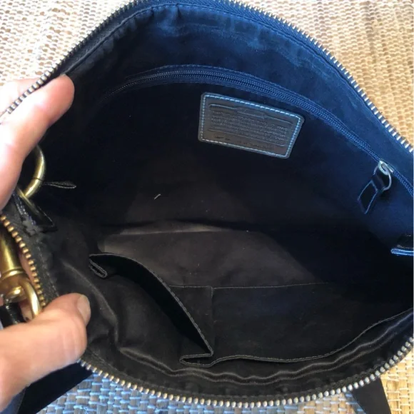COACH blk/gold crossbody Trending wide detachable long strap=44.5” body 10x13”