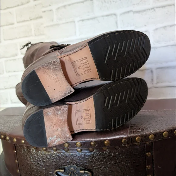 FRYE Veronica Slouch Motorcycle Boots Women´s Size 8 in Dark BrownLike new condition ( worn once) This is the boot you wear leaning against the wall at local dives, inspiring...