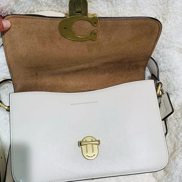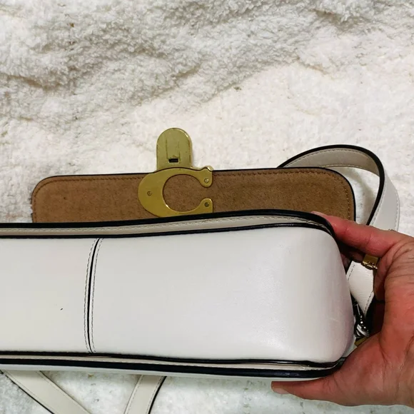 Coach White and Gold Crossbody Bag with Adjustable Strap