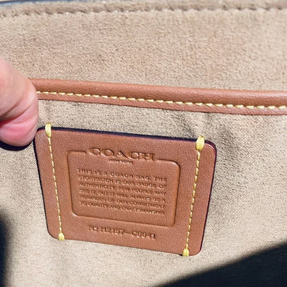 This Coach crossbody bag combines elegance and functionality with its sleek white leather-like finish and gold-toned hardware. The adjustable strap offers versatility, while the...