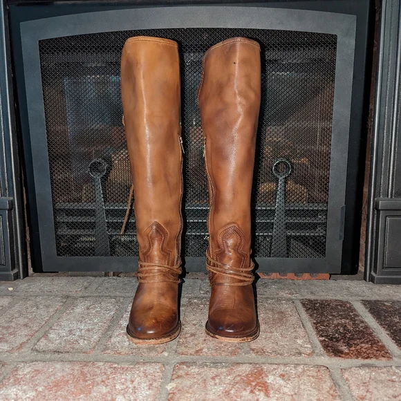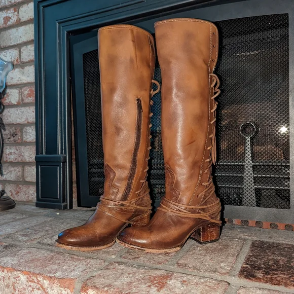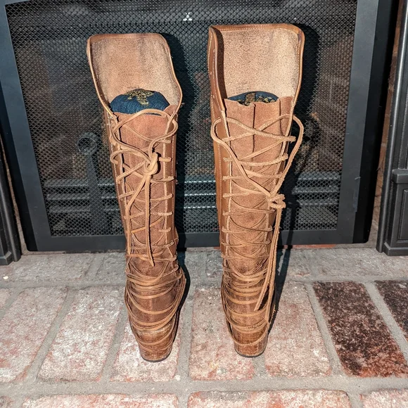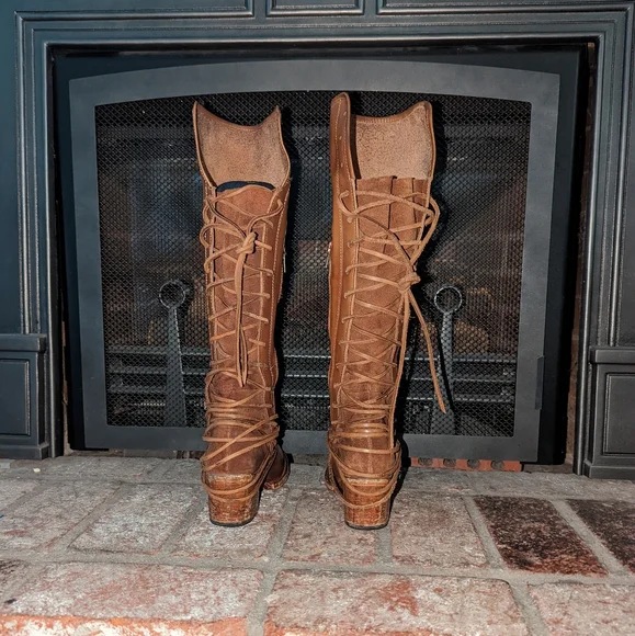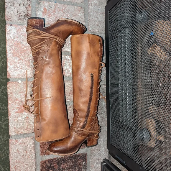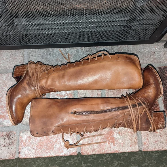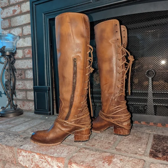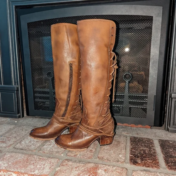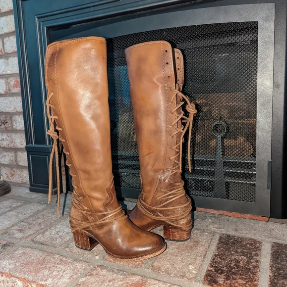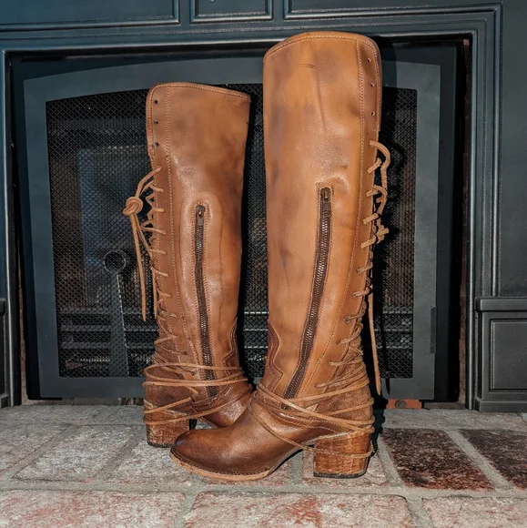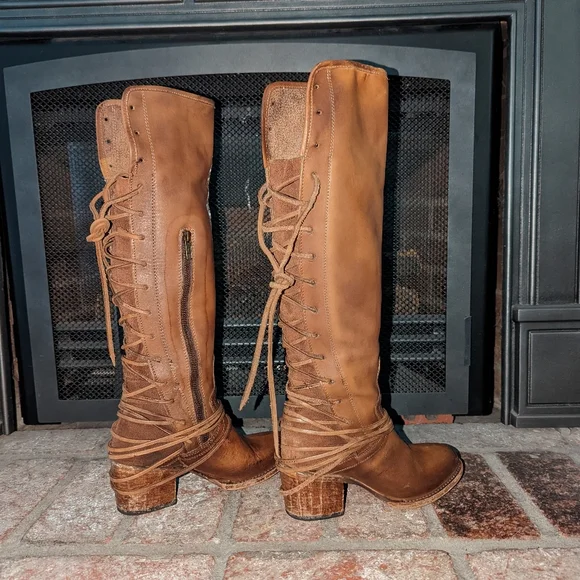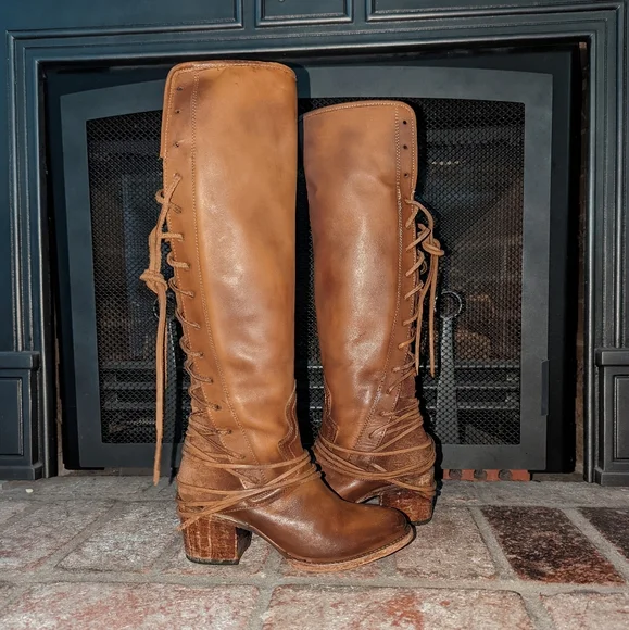 Freebird By Steven Coal lace up back boot in tan color. A striking hand-distressed finish adds rustic appeal to a knee-high leather boot fashioned with a vintage-inspired lace-up shaft. Leather upper material, leather lining, leather outsole. Blocked wooden heel.A striking hand-distressed finish adds rustic appeal to a knee-high suede leather boot fashioned with a vintage inspired lace-up shaft.EUC ( see pics) they are intentionally distressed Lace-Up Detailing At Back Apprx. 2 1/4" Heel Height Apprx. 16" Boot Shaft Height Size 6 Of Shaft Blocked Wooden HeelMade In MexicoTags: Summer/spring/fall/winter, festival, school, date, weekend, party, casual/formal wear, vacation, Easter, Mother´s Day, cruise, beach, date night, friday, weekday, church, school, college, streetwear, concert, movies, picnic, photoshoot, graduation, birthday, anthropologie, zara, free people, j.crew, Frye, Ralph Lauren. Bed Su boho torid city chic Western cowboy cowgirl farm rancher boho minimalist leopard textile snake print crocodile embossed leather vintage square toe boot pointy toe boot grunge, band of Gypsies johnny was