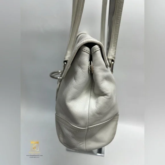 Coach soho hampton flap satchel 13x3x9All closures are functional. 3 interior pocketsThe item shows signs of wear from normal use-Blue stains on exterior,Worn leather,Marks throughout,Bent straps,Stains on interior and exterior,Scratched hardware,Etc.Please refer to photos for further details.In store and our website for $90JASK8448
