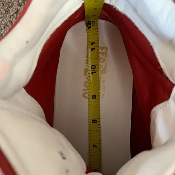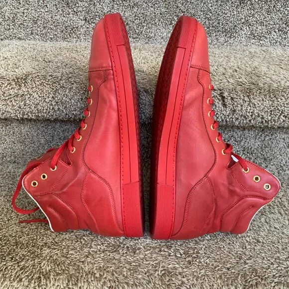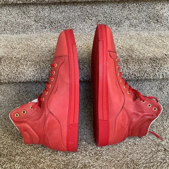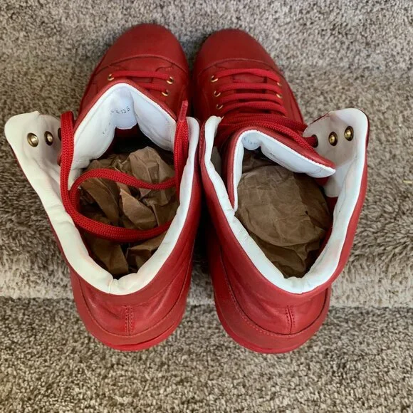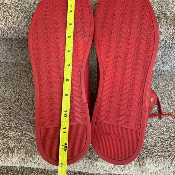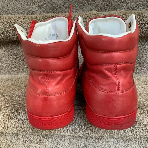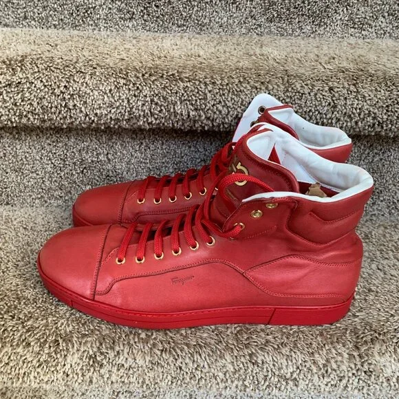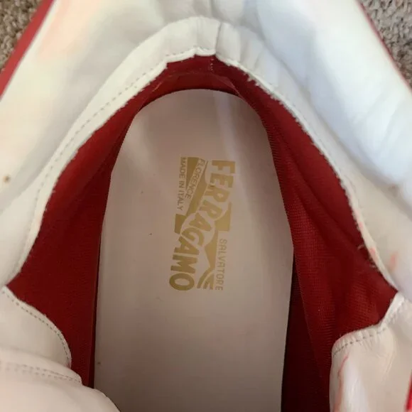 Salvatore Ferragamo Stephen 2 Men´s Red Leather Sneakers. Size: 13 EE. In very good condition with signs of use. Shows small creasing and discoloration at the back heel.