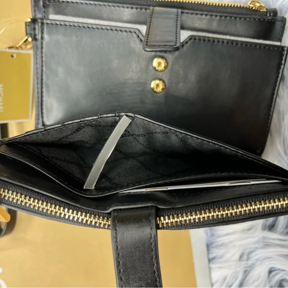 MICHAEL KORS LARGE DOUBLE ZIP WRISTLETWALLET PHONE CASE CLUTCHBlack MultiMICHAEL KORS LARGE DOUBLE ZIP WRISTLET wallet, clutch,Gold tone hardware6 credit card holders1 ID holder2...