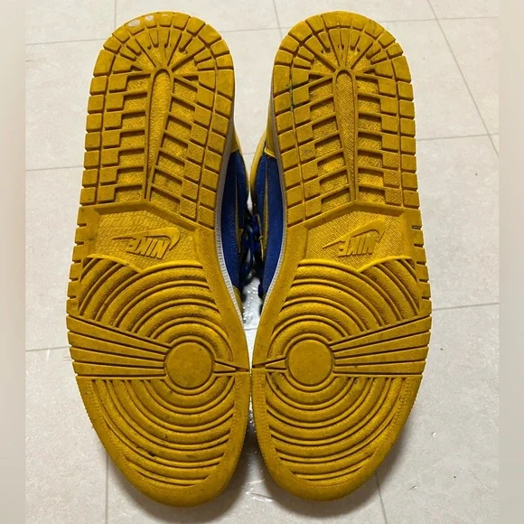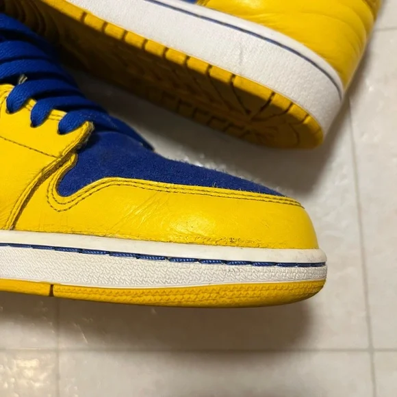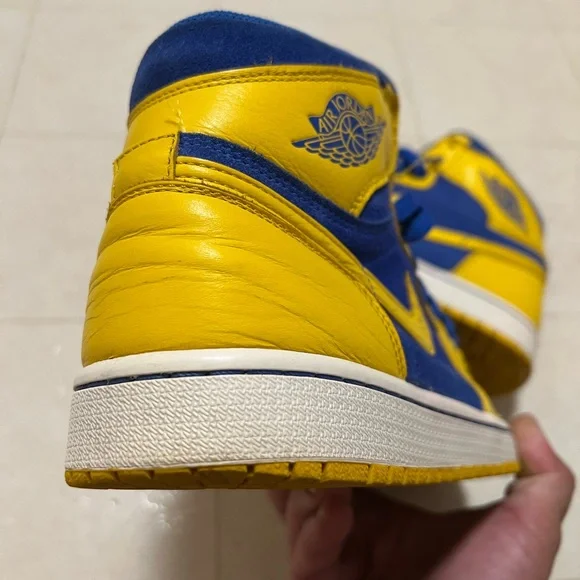 2013 Jordan laney 1sSize 9.5Please examine pictures for condition of the sneakers. Both shoes have heel drag. They do not have insoles. The suede is super clean and rich in color....