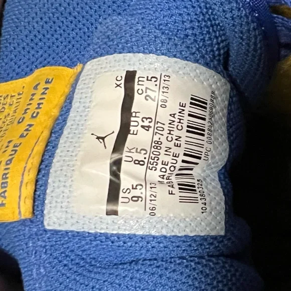 2013 Jordan laney 1sSize 9.5Please examine pictures for condition of the sneakers. Both shoes have heel drag. They do not have insoles. The suede is super clean and rich in color. Very soft. Not crusty and dirty. The leather upper has normal wear but still clean compared to other pairs you see for sale. Comes with replacement box. Feel free to ask questions