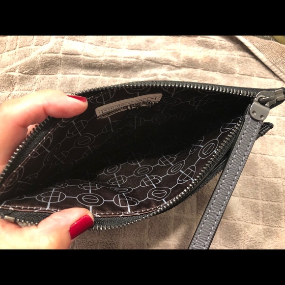 NWT edgy and practical wristlet Details:Size: 8” L x 6”Colors: Plum and BlackGunmetal hardwareSatin interior fabric with HB logosBlack pouch can be used separately Comes with...