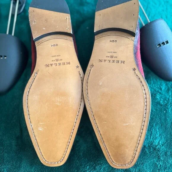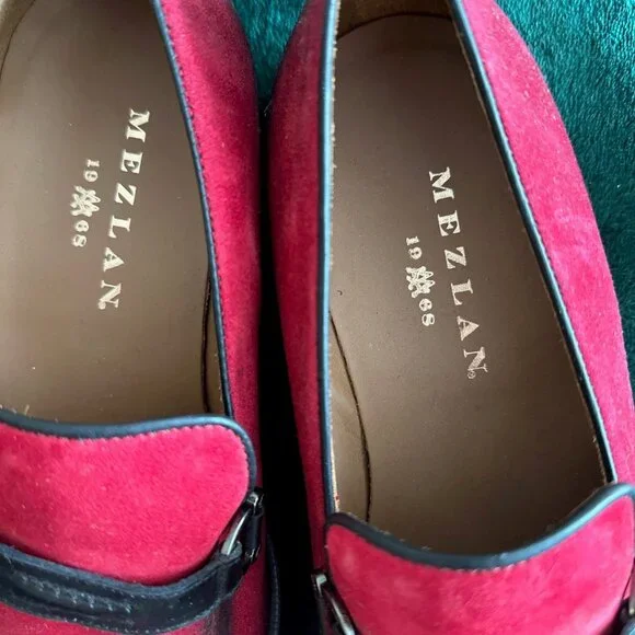 Size 9.5MMaterial: Suede LeatherHardware: HorsebitColor: RedOuter Sole: Leather SoleDress Slip On With Leather OrnamentHand-Finished Suede, Exquisite Leather StitchingFull Leather Sole With Upturn Side DetailInjected Memory Foam Comfort-Cushion InsoleSleek Silhouette, Full Rubber SoleHandmade in SpainAll items are final sale