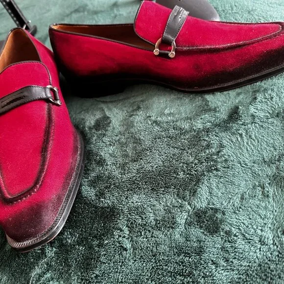 Size 9.5MMaterial: Suede LeatherHardware: HorsebitColor: RedOuter Sole: Leather SoleDress Slip On With Leather OrnamentHand-Finished Suede, Exquisite Leather StitchingFull Leather...