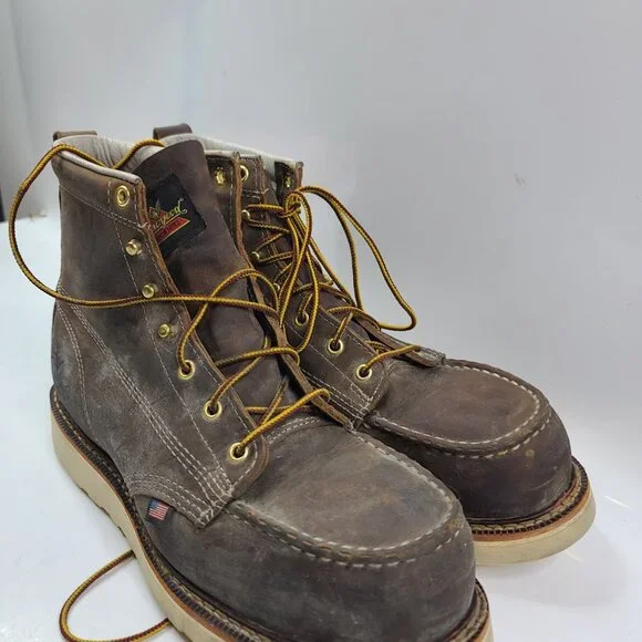 Thorogood Men´s Dark Brown American Heritage Leather Mac Toe Work Shoes 10.5DBrand: ThorogoodDepartment: MenColor: Dark BrownUS Shoe Size: 10.5Type: BootStyle: Work ShoeModel...