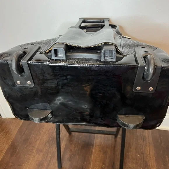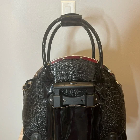 Alligator & Ostrich Pattern Faux Leather Handbag- Trolley Sleeve Leatherette Bag- Double Handles- Retractable Handle Extends To 38 Inches- Faux Leather With Lined Polka Dot...