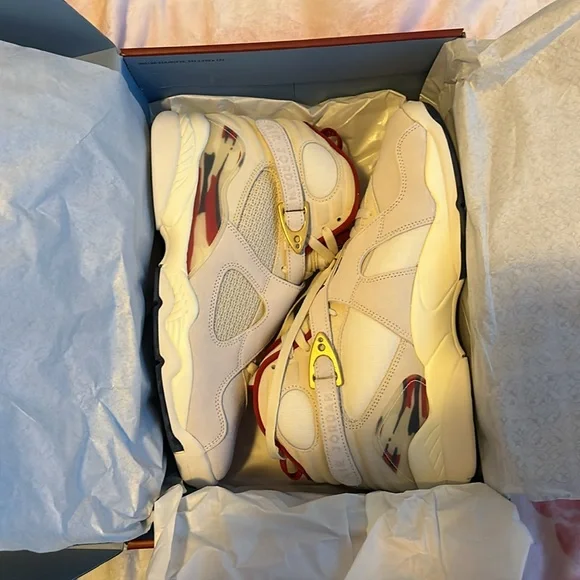 Brand new Jordan 8 solefly never worn never tried on comes with box and everything it came with they where never touched besides for this picture