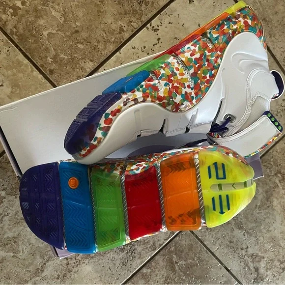 Step up your sneaker game with these Nike Zoom LeBron 4 sneakers in the Fruity Pebbles colorway. Featuring a foamposite upper material and a Zoom Air sole unit, these shoes offer...