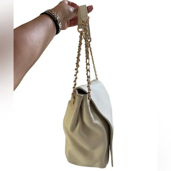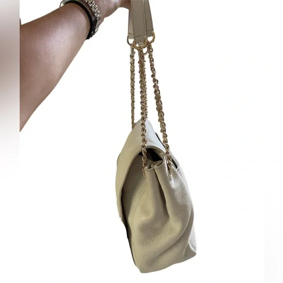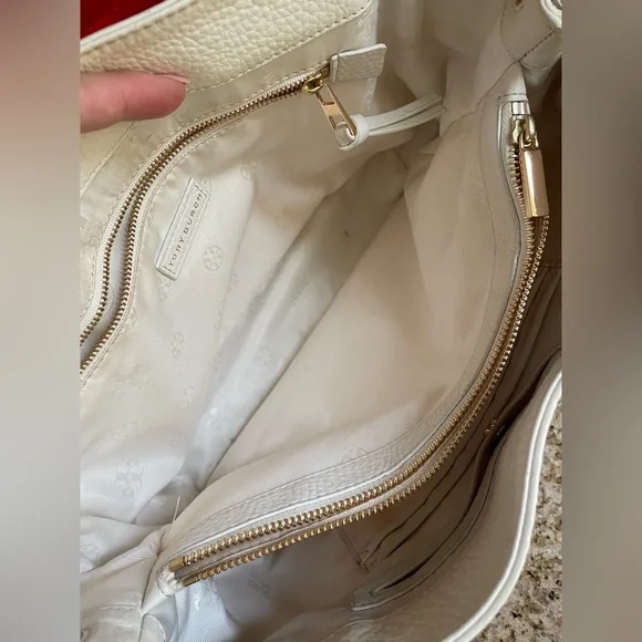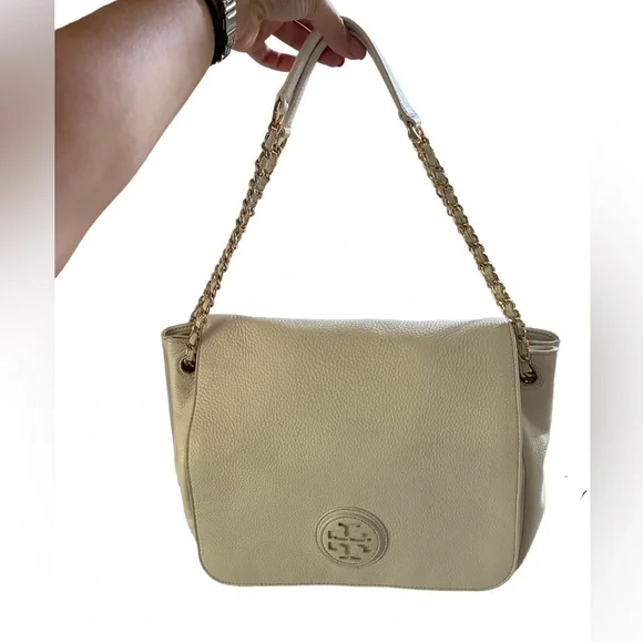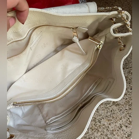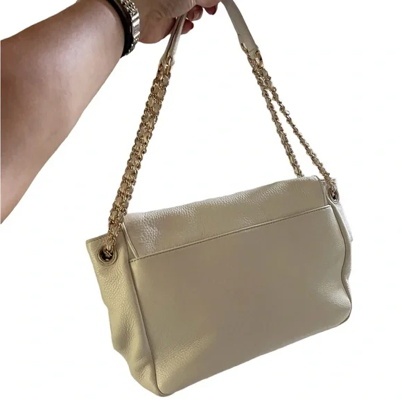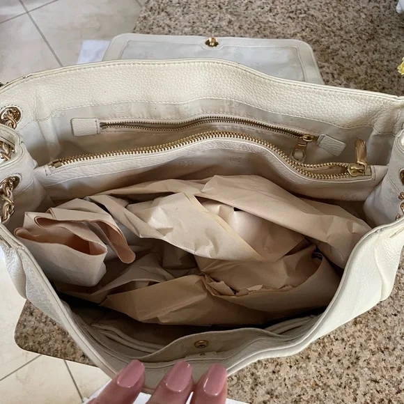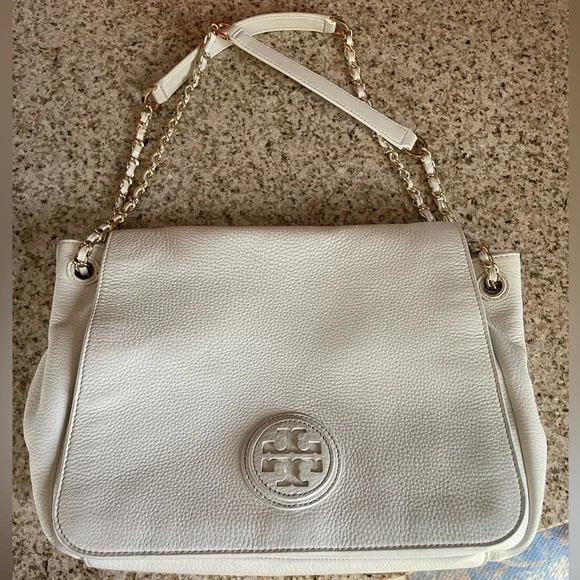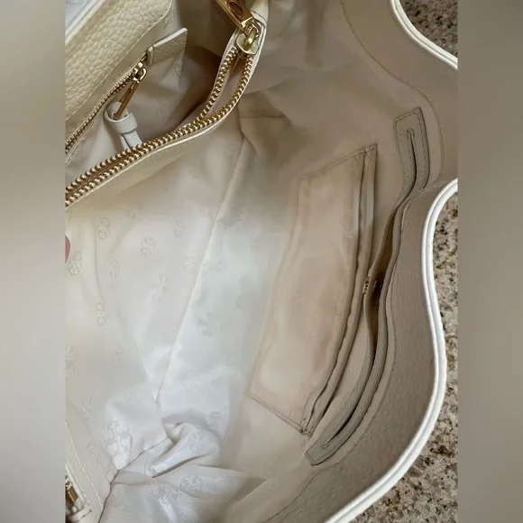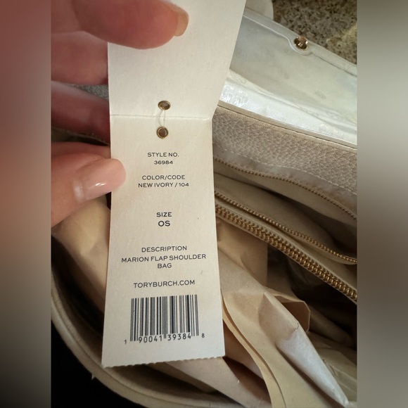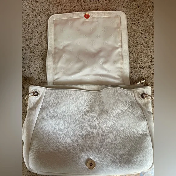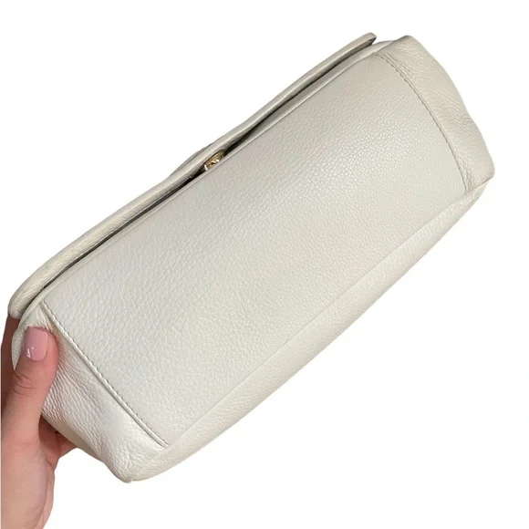 NWT Tory Burch MARION FLAG IVORY White Leather Double Strap Shoulder Purse