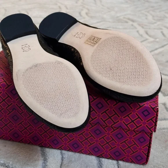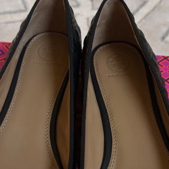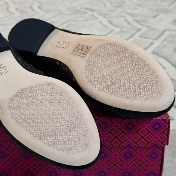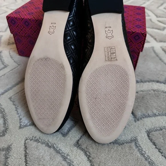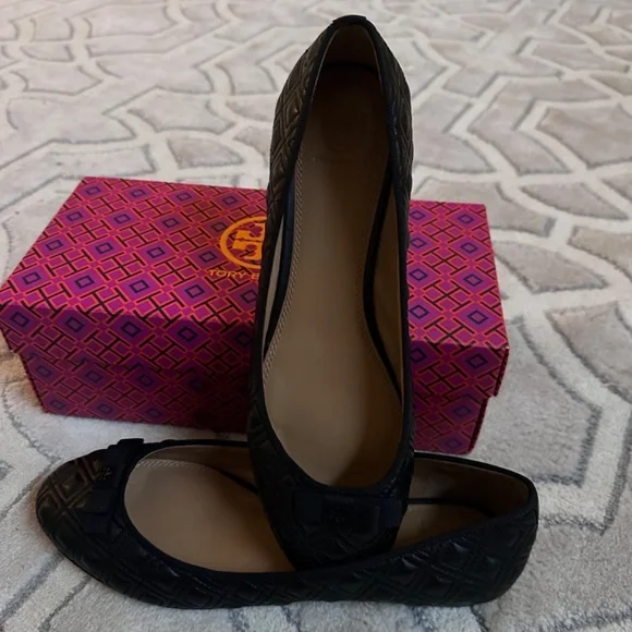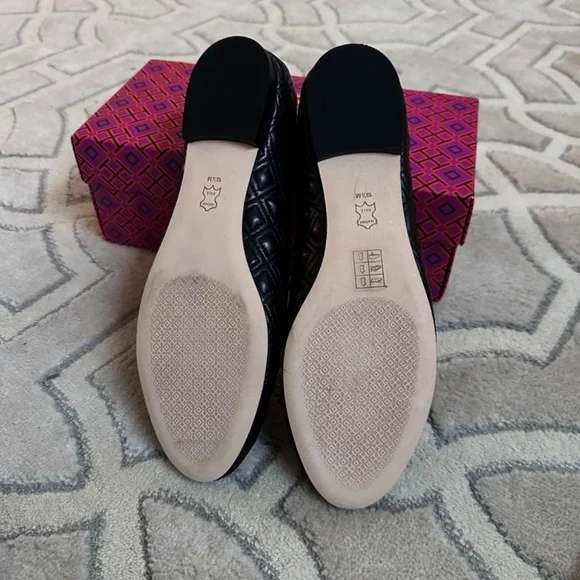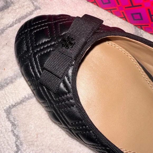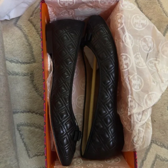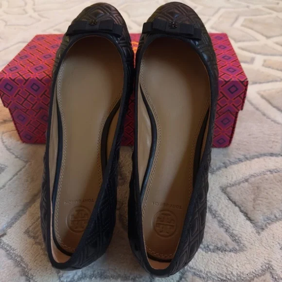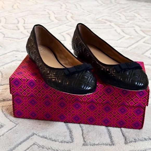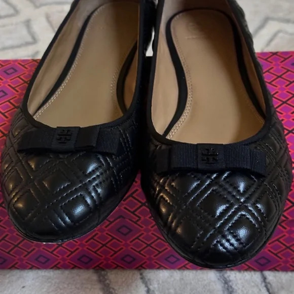 Tory Burch MARION PERFECT BLACK QUILTED NAPPA LEATHER /GROSGRAIN BOW BALLET FLATS 10.5Size WomenUS 10.5Color BlackCondition New