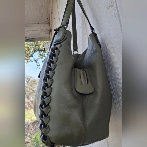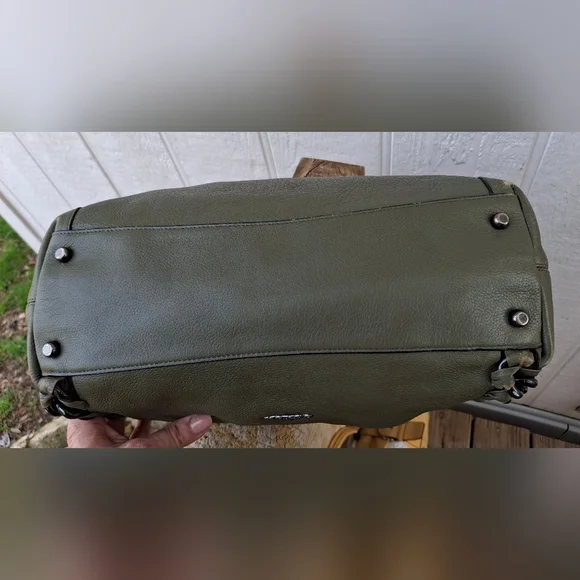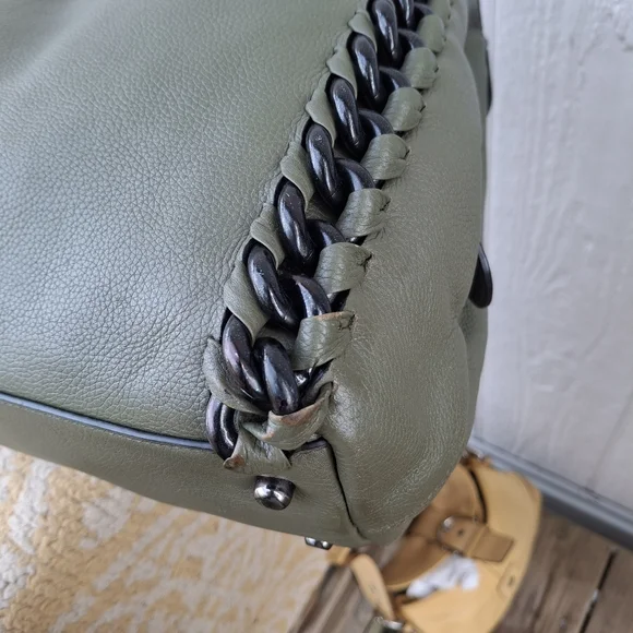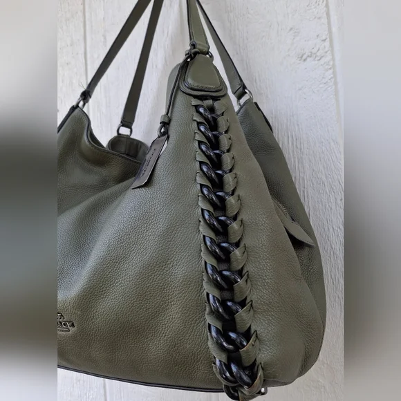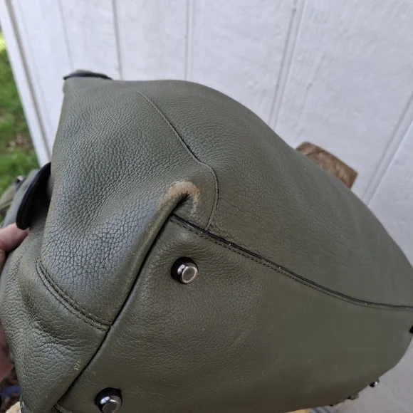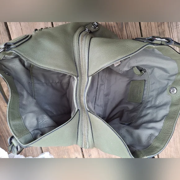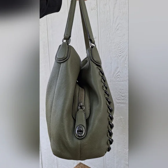 Olive Green w/ silver hardware COACH Edie #35819 3 compartment turn-lock Carryall Shoulder Bag.Coolest Bag Ever!! Does have some corner wear. Otherwise great condition.Clean...