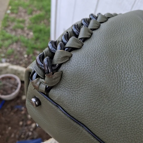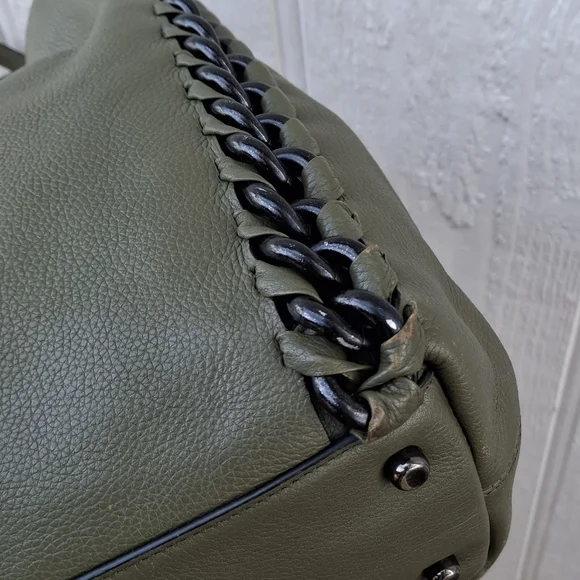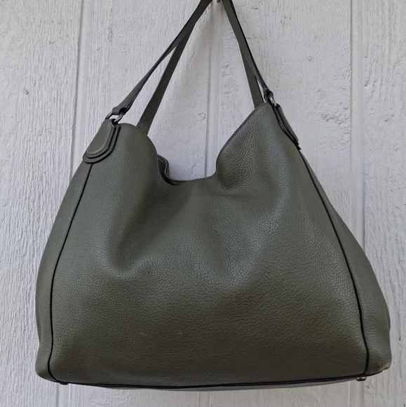 Olive Green w/ silver hardware COACH Edie #35819 3 compartment turn-lock Carryall Shoulder Bag.Coolest Bag Ever!! Does have some corner wear. Otherwise great condition.Clean interior.Approximately 13l x 11h x 4w